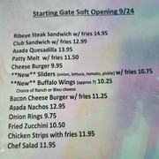 Starting Gate offers a diverse menu. You can enjoy appetizers, sandwiches, specialty chicken, and salads. The average price is just around $5.43, making it budget-friendly for all.